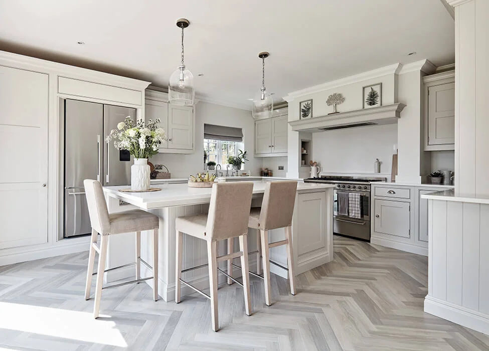 White Washed Oak Impervia Herringbone Parquet